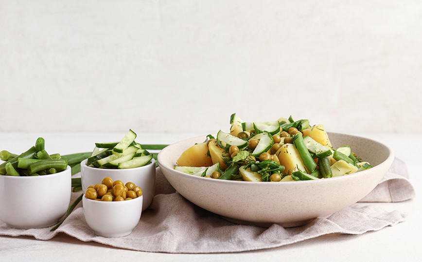 Υλικά 500 γρ. πατάτες, κομμένες σε κύβους 250 γρ. φρέσκα φασολάκια, κομμένα 4 αυγά βραστά, ξεφλουδισμένα και ψιλοκομμένα 1/2 φλ. τσαγιού μαϊντανό, ψιλοκομμένο 2 κ. σ. φρέσκο σχοινόπρασο ή/και άνηθο, ψιλοκομμένο Για τη σάλτσα: 3 κ. σ. μαγιονέζα 2 κ. σ. λευκό ξύδι 1 κ. σ. μέλι ή κρυσταλλική ζάχαρη 1/2 κ. σ. μουστάρδα Ξύσμα και χυμό από 1 μέτριο λεμόνι 2 σκελίδες σκόρδο, ψιλοκομμένες 1/2 φλ. τσαγιού ελαιόλαδο 1 1/4 κ. γλ. χοντρό αλάτι 1/4 κ. γλ. φρεσκοτριμμένο μαύρο πιπέρι Εκτέλεση Σε ένα μεγάλο μπολ ανακατέψτε καλά τη μαγιονέζα, το ξύδι, το μέλι, τη μουστάρδα, το ξύσμα και το χυμό λεμονιού. Ρίξτε σιγά σιγά το ελαιόλαδο και προσθέστε αλάτι και μαύρο πιπέρι- δοκιμάστε και προσαρμόστε το καρύκ