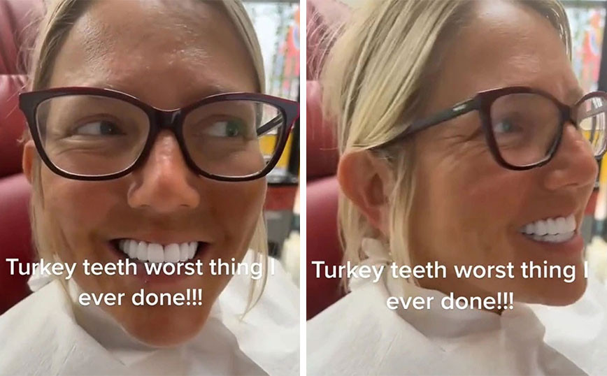 Τα «τουρκικά δόντια» γνωστά και ως «δόντια Τουρκίας» μπορεί να προσελκύουν ολοένα και περισσότερο κόσμο, με σελέμπριτι και influencers να δηλώνουν «περήφανοι», όμως δεν χαίρονται όλοι για την απόφαση που πήραν, καθώς οι συνέπειες είναι σχεδόν μη αντιστρέψιμες. Όπως αναφέρει η thesun.co.uk, η χρήστρια του TikTok @mdcov86 ανέβασε ένα βίντεο στην δημοφιλή εφαρμογή, τονίζοντας ότι είναι το χειρότερο πράγμα που έχει κάνει ποτέ στη ζωή της. Μάλιστα, πέρα από τους αφόρητους πόνους, αναφέρθηκε και στα αρνητικά σχόλια που δέχεται, τονίζοντας ότι «μοιάζω με τον Ross από το Friends». Η γυναίκα είπε ότι πήγε στην Τουρκία τον Απρίλιο και πλήρωσε περίπου 7.000 ευρώ για να βάλει τα «τουρκικά δόντια», εν