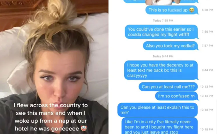 Viral έχει γίνει στο TikTok η ιστορία του ραντεβού μιας γυναίκας, καθώς εκείνη ταξίδεψε αρκετά μακριά για να δει τον αγαπημένο της, μόνο και μόνο για να την παρατήσει το δεύτερο βράδυ και να εξαφανιστεί. Όπως αναφέρει η nypost.com, η Samantha Marie από τις ΗΠΑ που διατηρεί στο TikTok τον λογαριασμό @sdenoyer, ανέφερε πως ταξίδεψε την μισή χώρα για να γνωρίσει από κοντά έναν άνδρα με τον οποίο μιλούσαν συνέχεια μέσω του FaceTime. Χωρίς να αποκαλύψει περισσότερες λεπτομέρειες, είπε πως ταξίδεψε με το αεροπλάνο μέχρι την γενέτειρα του φίλου της, με το πρώτο βράδυ να κυλάει ομαλά, ενώ κοιμήθηκαν στο σπίτι του. Παρόλα αυτά, όπως είπε στο βίντεο που έχει πάνω από 1,8 εκατ. προβολές, την δεύτερη