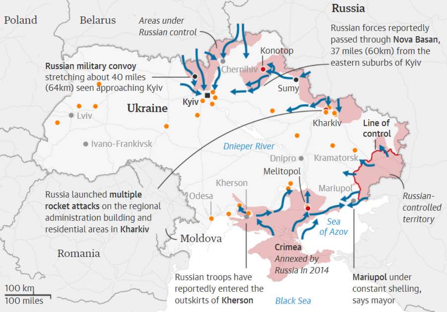Μία δυσμενής ανάλυση για το τέλος του πολέμου στην Ουκρανία δημοσίευσε ο Guardian, σύμφωνα με την οποία δεν υπάρχει ξεκάθαρος νικητής, καθώς αναμένονται ανυπολόγιστες συνέπειες, ενώ ανοιχτό είναι το ενδεχόμενο για γενικευμένη πολεμική σύγκρουση. Το άρθρο στον theguardian.com υπογράφει ο Christopher S Chivvis, διευθυντής του American Statecraft Program στο Carnegie Endowment for International Peace. Σύμφωνα με τον ίδιο, η Ρωσία μέχρι στιγμής, ακολουθεί «ακριβώς την τακτική που εφάρμοσαν οι ΗΠΑ στη Γιουγκοσλαβία και το Κόσοβο», με αποτέλεσμα να υπάρχει «παγωμάρα» στην δυτική αντίδραση, αφού πρέπει να καταδικάσει πράξεις, που στο πρόσφατο παρελθόν επευφημούσε. Έτσι, προκύπτουν δύο σενάρια, μ