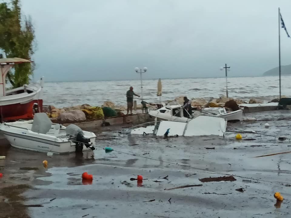 Κακοκαιρία Ιανός: Καράβια βγαίνουν στη στεριά στη Σάμη Κεφαλονιάς (vids)