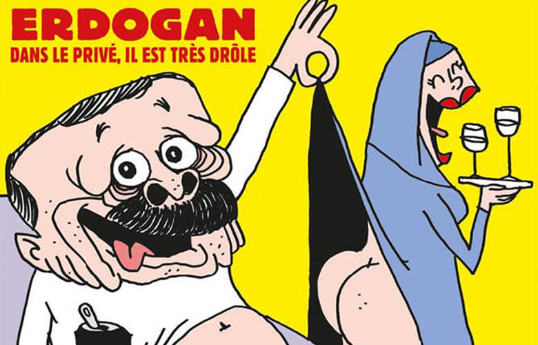 Με ύβρεις σχολίασε το νέο σκίτσο του Charlie Hebdo ο αναπληρωτής υπουργός Πολιτισμού και Τουρισμού της Τουρκίας, Σερντάρ Καμ, δείχνοντας ότι ο γαλλοτουρκικός αυτός πόλεμος μόλις ίσως ξεκίνησε. «Είστε μπάσταρδοι. Γιοι σκύλας», έγραψε στα γαλλικά ο Τούρκος αξιωματούχος, εκφράζοντας την έντονη αντίδρασή του για το εξώφυλλο του γαλλικού σατιρικού περιοδικού, στο οποίο πρωταγωνιστεί ο Ρετζέπ Ταγίπ Ερντογάν. Δείτε εδώ. Το 1475ο τεύχος του «Charlie Hebdo» απεικονίζει τον Τούρκο πρόεδρο να κάθεται με εσώρουχα στην πολυθρόνα του, να σηκώνει το φουστάνι μιας μουσουλμάνας, η οποία θα μπορούσε να είναι και η σύζυγός του, Εμινέ Ερντογάν. Σε αυτή, ο Τούρκος πρόεδρος εμφανίζεται να σηκώνει το ρούχο μιας μουσο