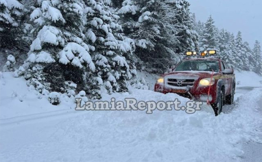 Στα λευκά τα ορεινά και τα ημιορεινά της Λαμίας και της δυτικής Φθιώτιδας: Χιονίζει προς Δοκομό, Μπράλο και Καρπενήσι