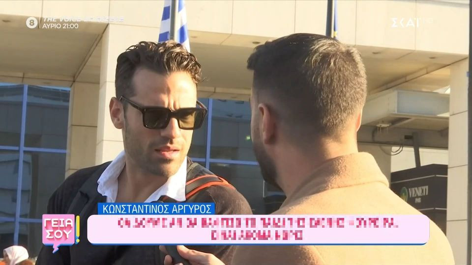 Τον Κωνσταντίνο Αργυρό συνάντησε η κάμερα της εκπομπής, «Γειά Σου», κατά την άφιξή του στο αεροδρόμιο Ελευθέριος Βενιζέλος μετά την επιστροφή του από το Ντουμπάι. Ο δημοφιλής τραγουδιστής ρωτήθηκε για την εγκυμοσύνη της Ελένης Φουρέιρα, το ενδεχόμενο να βαφτίσει ο ίδιος το μωρό, αλλά και κάποια σχόλια για τη φετινή του συνεργασία με τον Σάκη Ρουβά. «Ζούμε μαγικές στιγμές με τον Σάκη. Βγάζω χημεία με αυτόν τον άνθρωπο, είναι τρομερός. Γενικά τον τελευταίο ενάμιση χρόνο κάνουμε παρέα», ανέφερε αρχικά ο Κωνσταντίνος Αργυρός. Θα δούμε τον τραγουδιστή στη σκηνή του Madwalk και μάλιστα μαζί με την Ελένη Φουρέιρα; Ο ίδιος απαντά: «Έχω ραντεβού το βράδυ γι’ αυτό τον λόγο. Όχι, η Ελένη πρέπει τώρα