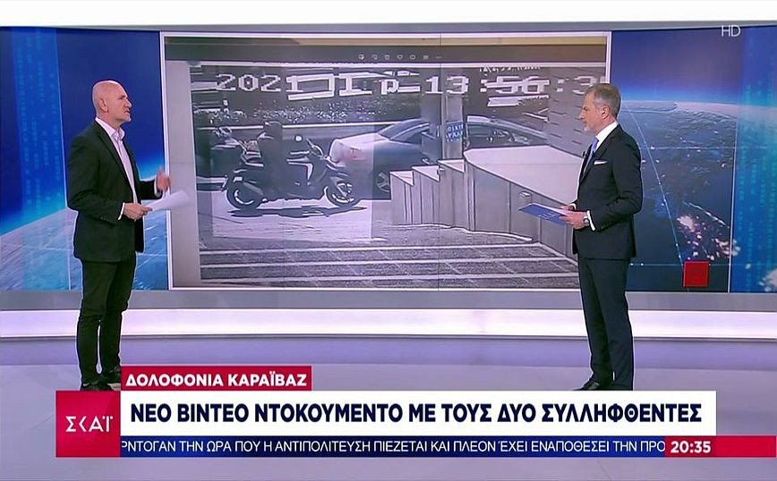 Δύο αποκαλυπτικές φωτογραφίες – ντοκουμέντα από κάμερα κλειστού κυκλώματος που κατέγραψε τις κινήσεις των συλληφθέντων για τη δολοφονία του Γιώργου Καραϊβάζ έφερε στη δημοσιότητα ο δημοσιογράφος του ΣΚΑΪ Παναγιώτης Σπυρόπουλος. Διακρίνονται το κλειστό φορτηγάκι της εταιρείας καθαρισμού, και το σκούτερ των δολοφόνων, που έχουν παράλληλη κίνηση στην οδό Μέγιστης και στη λεωφόρο Ποσειδώνος, περίπου 24 λεπτά πριν τη δολοφονία του δημοσιογράφου. Το σκούτερ, με έναν αναβάτη, φαίνεται να εποπτεύει την περιοχή, καθώς κινείται στις οδούς Μέγιστης, Υψηλάντου, Ταξιάρχων και στη Λεωφόρο Ποσειδώνος παράλληλα σχεδόν με το φορτηγάκι, ή με διαφορά τουλάχιστον 55 δευτερόλεπτων, ή και λιγότερων τη σ