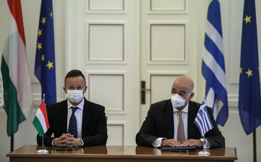 «Αν η Τουρκία ενοχλείται από αυτές τις συμφωνίες, αυτό μπορεί μόνο να σημαίνει ότι διαλαμβάνει τον εαυτό της ως δύναμη επιτιθέμενου», τόνισε χαρακτηριστικά ο υπουργός Εξωτερικών Νίκος Δένδιας, σε δηλώσεις μετά τη συνάντηση με τον Ούγγρο ομόλογό του Πίτερ Σιάρτο (Péter Szijjártó), ο οποίος πραγματοποιεί επίσκεψη σήμερα στην Αθήνα και χαρακτήρισε τις τουρκικές αιτιάσεις μετά την υπογραφή της αμυντικής συμφωνίας Ελλάδας-Γαλλίας «εντελώς απαράδεκτες». «Η συμφωνία με τη Γαλλία είναι αμιγώς αμυντική συμφωνία, δεν στρέφεται εναντίον οιουδήποτε», υπογράμμισε, ενώ ανέφερε πως «προωθεί την ευρωπαϊκή άμυνα, συμβαδίζει με τις δεσμεύσεις μας στο ΝΑΤΟ, κάτι που εξάλλου αναγνωρίστηκε και από την αμερικα