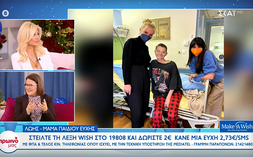 Το «Πρωινό μας» είναι σήμερα αφιερωμένο στο Make a Wish. Στο πλατό βρέθηκε η Λώης, η μητέρα της Φενίνας, την οποία είχαν επισκεφτεί η Ηλιάνα Παπαγεωργίου με την Έλενα Χριστοπούλου. «Η Φενίνα έγινε αστέρι ευχής στις 24 Απριλίου, τη μέρα του Πάσχα το ’22. Η πορεία της ήταν χέρι χέρι με την ευχή και χέρι χέρι με το Make a wish», είπε αρχικά η Λώης. Στη συνέχεια η Έλενα Χριστοπούλου μίλησε για την επίσκεψη που έκανε στη Φενίνα μαζί με την Ηλιάνα Παπαγεωργίου. «Δεν το πίστευε. Για εμένα ήρθαν; Γέμισε φως από το χαμόγελό της. Όλο το χρυσάφι του κόσμο να είχα, δεν θα συγκρινόταν με το χαμόγελό της» είπε η μητέρα της. «Είμαι μαμά παιδιού ευχής και δανείζω τη φωνή μου γιατί το παιδί δεν μπορεί να