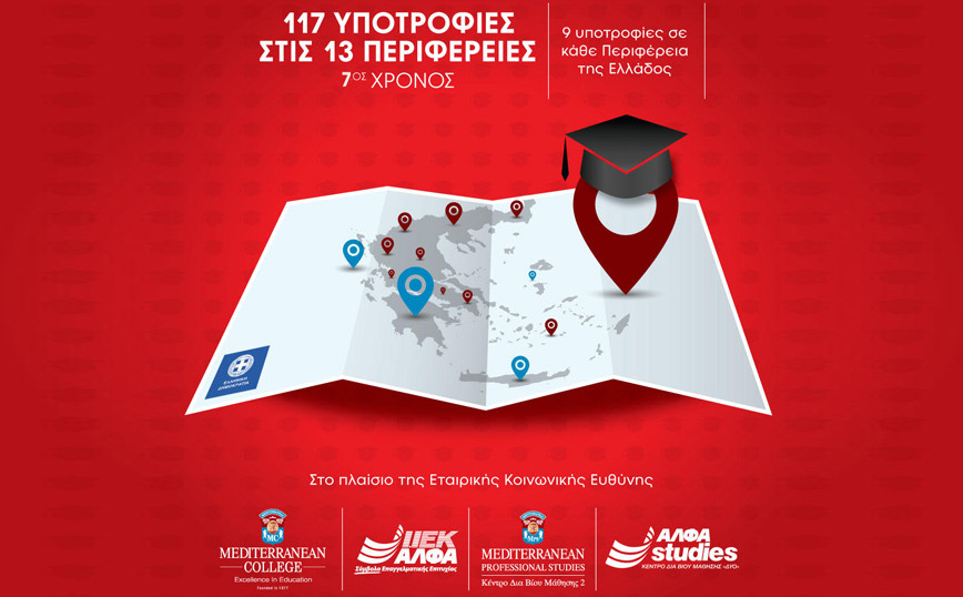 Για 7η συνεχή χρονιά, 117 Υποτροφίες Σπουδών στις Περιφέρειες της Ελλάδας από το IEK ΑΛΦΑ & το Mediterranean College