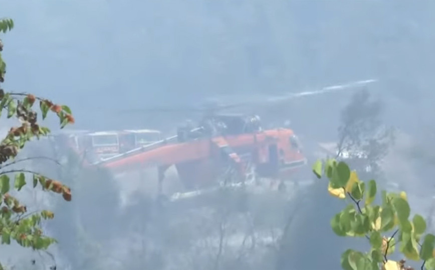Φωτιά στη Γορτυνία: Εντυπωσιακό βίντεο με πυροσβεστικό ελικόπτερο που ανεφοδιάζεται από τον ποταμό Λάδωνα