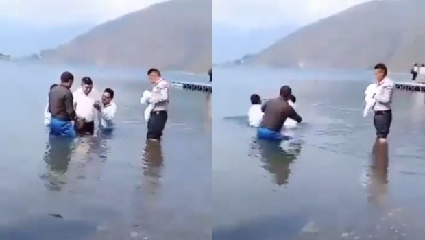 Μία θρησκευτική τελετή κατέληξε σε τραγωδία, όταν ένας άνδρας πνίγηκε σε μια λίμνη στην Γουατεμάλα. Το βίντεο δείχνει τον Μιγκέλ Σούτ, 45 ετών, να στέκεται στην άκρη σε νερά μέχρι το γόνατο, ενώ οι πιστοί της χριστιανικής εκκλησίας ετοιμάζονταν να βαπτίσουν έναν άλλο μέλος τους στη Λίμνη Ατίτλάν, στην πόλη Σαν Λούκας Τολιμάν, στη νοτιοδυτική […]