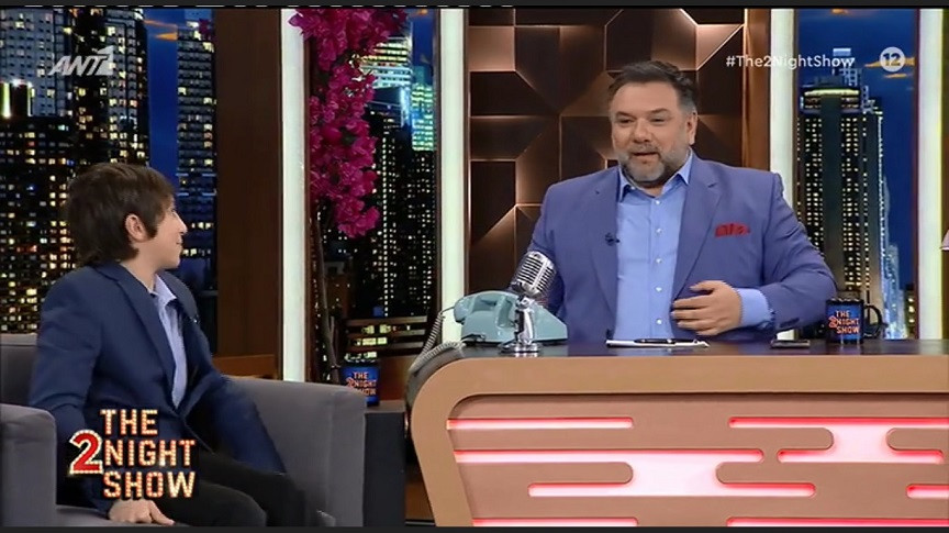 Ο Γρηγόρης Αρναούτογλου υποδέχτηκε στο «The 2Night Show» της Δευτέρας (11/4) τον Μανώλη Γκίνη. Ο μικρός πρωταγωνιστής, με το τεράστιο ταλέντο, μιλάει για όλα με αυθορμητισμό και σπιρτάδα, σε μια απολαυστική συζήτηση. Μεταξύ άλλων, αναφέρθηκε στον ρόλο του Άγγελου στη σειρά «Τα Καλύτερά μας χρόνια» της ΕΡΤ, στην εμπειρία του στην παράσταση «Εκτός Ελέγχου», στη σχέση του με την υποκριτική, αλλά και με τα μεγαλύτερα αδέλφια του. Τι του έκανε εντύπωση στην περιοδεία της παράστασης στη Θεσσαλονίκη; «Η υποκριτική μου αρέσει πολύ. Σκέφτομαι να το ακολουθήσω για χόμπι. Εγώ θέλω να γίνω κτηνίατρος. Στον ελεύθερο μου χρόνο κάνω πατίνι, ποδήλατο και καμιά φορά επιτραπέζια παιχνίδια», είπε αρχικά ο Μ