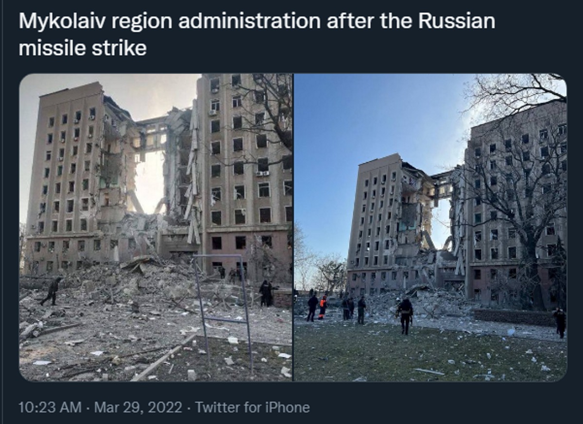 "Επλήγη το κτίριο της περιφερειακής διοίκησης", σημειώνει στην ανάρτησή του ο κυβερνήτης Βιτάλι Κιμ, διαβεβαιώνοντας ότι οι περισσότεροι από αυτούς που βρίσκονταν στο εσωτερικό του γλίτωσαν από το πλήγμα. Ωστόσο "αναζητούνται 8 άμαχοι και 3 στρατιωτικοί" στα συντρίμμια, σημείωσε ο αξιωματούχος.