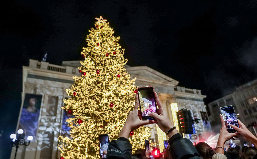 Ο Πειραιάς «ντύθηκε» χριστουγεννιάτικα – Φωταγωγήθηκε το δέντρο με τα 150.000 λαμπιόνια