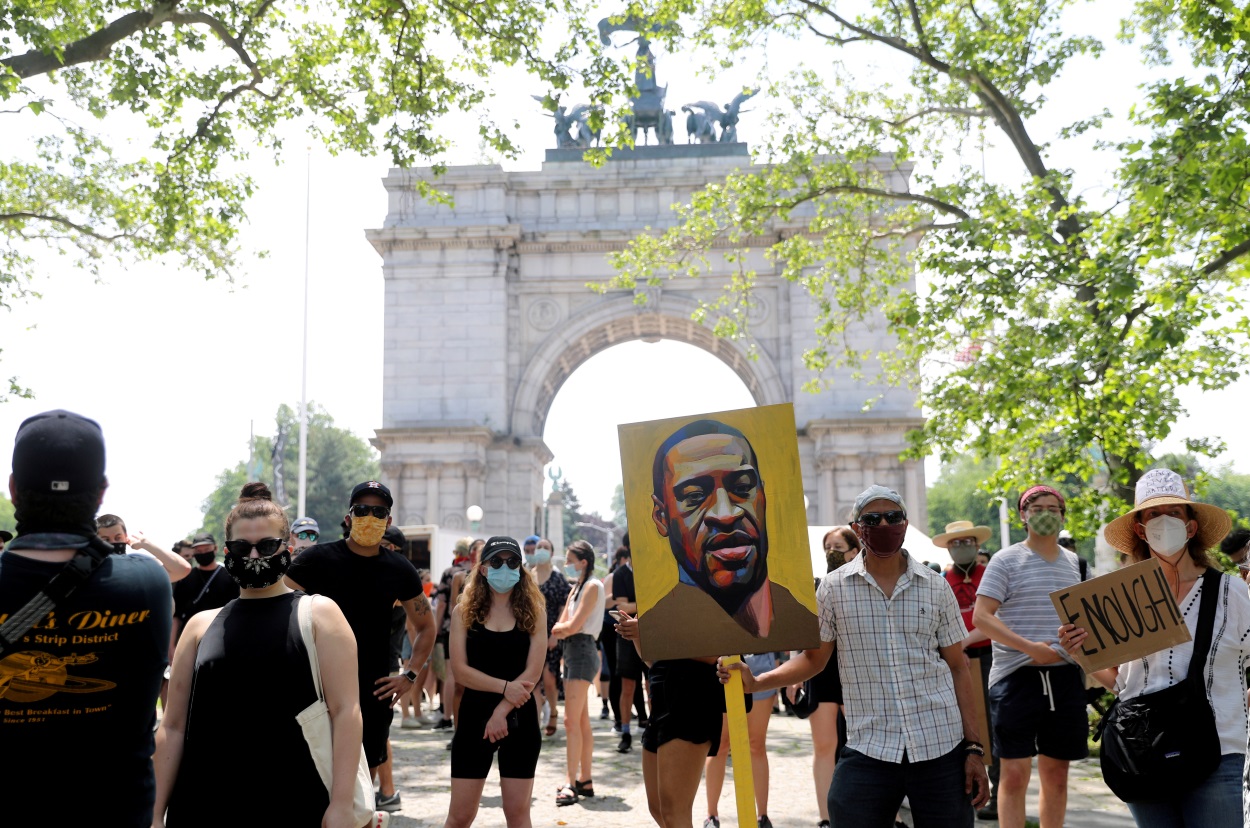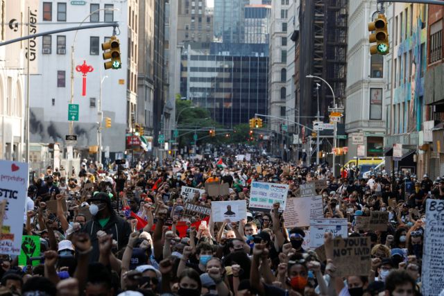 Οι διαδηλωτές γονάτισαν και τήρησαν ενός λεπτού σιγή σε ένδειξη διαμαρτυρίας για την αστυνομική βία απέναντι στους μαύρους.
