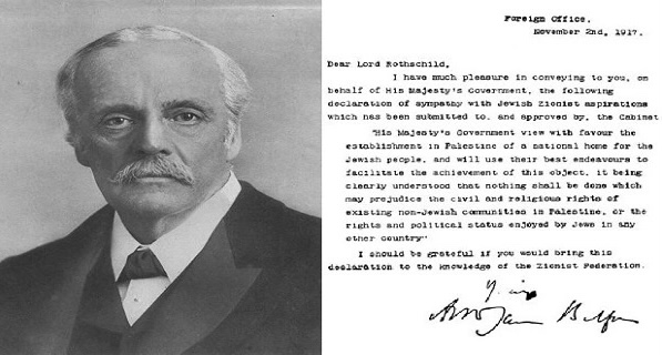 1917 - Ο υπουργός Εξωτερικών της Μεγάλης Βρετανίας, Άρθουρ Τζέιμς Μπάλφουρ, δηλώνει ότι «ήρθε η ώρα, οι Εβραίοι να αποκτήσουν κράτος στην Παλαιστίνη». Θα μείνει στην ιστορία ως Διακήρυξη Μπάλφουρ, πάνω στην οποία θα βασιστεί η ίδρυση του κράτους του Ισραήλ το 1948.