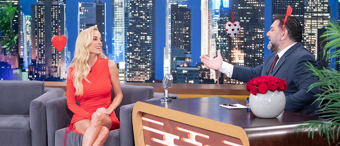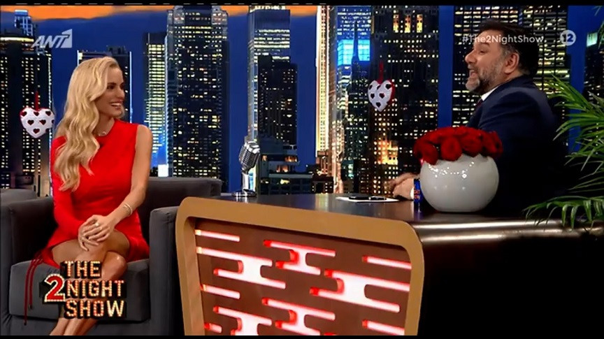 Με το αγαπημένο της τραγούδι και έναν χορό, ο Γρηγόρης Αρναούτογλου υποδέχτηκε στο «The 2Night Show» της Δευτέρας (14/2) ανήμερα της «γιορτής του έρωτα», τη Δούκισσα Νομικού. Λαμπερή και χαμογελαστή, η Δούκισσα Νομικού μοιράστηκε λεπτομέρειες από τη διαδρομή της στον χώρο της μόδας και της τηλεόρασης. Η ομορφιά της είναι ένα στοιχείο που ξεχωρίζει επάνω της αλλά εκείνη ποτέ δεν καβάλησε το καλάμι. Ποτέ δεν σκέφτηκε να φύγει στο εξωτερικό για να δοκιμάσει την τύχη της σε πασαρέλες διεθνών οίκων μόδας γιατί «Δεν μ΄αρέσει η μοναξιά, είμαι πολύ της οικογένειας, μου αρέσει η Ελλάδα» τόνισε. Μεταξύ άλλων, θυμήθηκε με συγκίνηση τη συνεργασία της με τον Θέμο Αναστασιάδη, μίλησε για την παρουσίαση