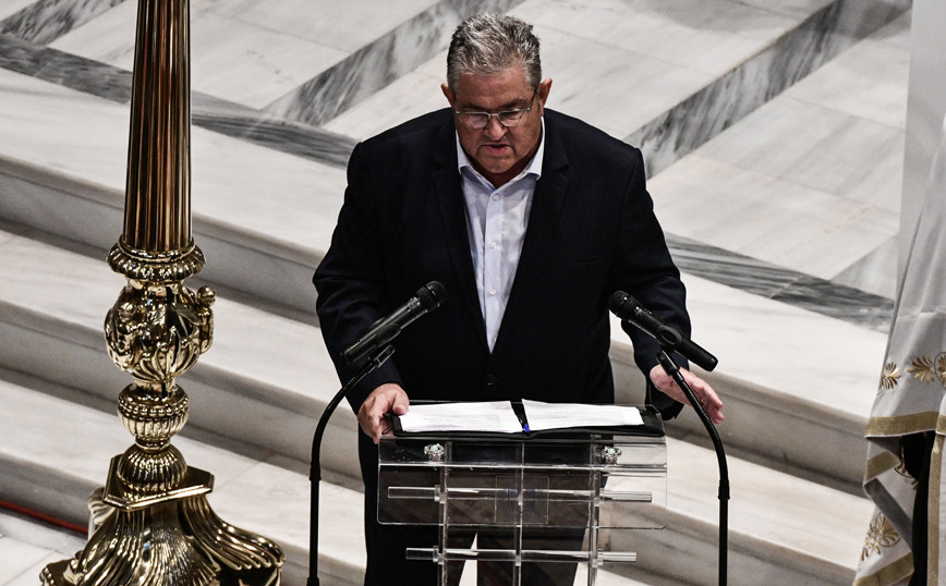 Επικήδειο εκφώνησε o Δημήτρης Κουτσούμπας στο πλαίσιο της τελετής αποχαιρετισμού για τον Μίκη Θεοδωράκη, παίρνοντας τον λόγο στη Μητρόπολη Αθηνών, αμέσως μετά την Πρόεδρο της Δημοκρατίας, Κατερίνα Σακελλαρπούλου. Ο ΓΓ του ΚΚΕ αναφέρθηκε στην πορεία, τη ζωή και το έργο του κορυφαίου μουσικοσυνθέτη, από τα χρόνια της συμμετοχής του στο ΕΑΜ και την εξορία στη Μαρκόνησο, μέχρι τη συμμετοχή του στις κινητοποιήσεις ενάντια στα μνημόνια, στο πρόσφατο παρελθόν. Εξήρε, δε, τον δημιουργό που «δεν μελοποίησε μόνο έξοχα τον ποιητικό λόγο» αλλά και που «τον αναδημιούργησε και τον παρέδωσε με εκείνη τη μορφή που μπαίνει κατ’ ευθείαν στη λαϊκή ψυχή», όπως τόνισε. «Στο φέρετρό σου σηκώνεται, υψώνει τη γρ