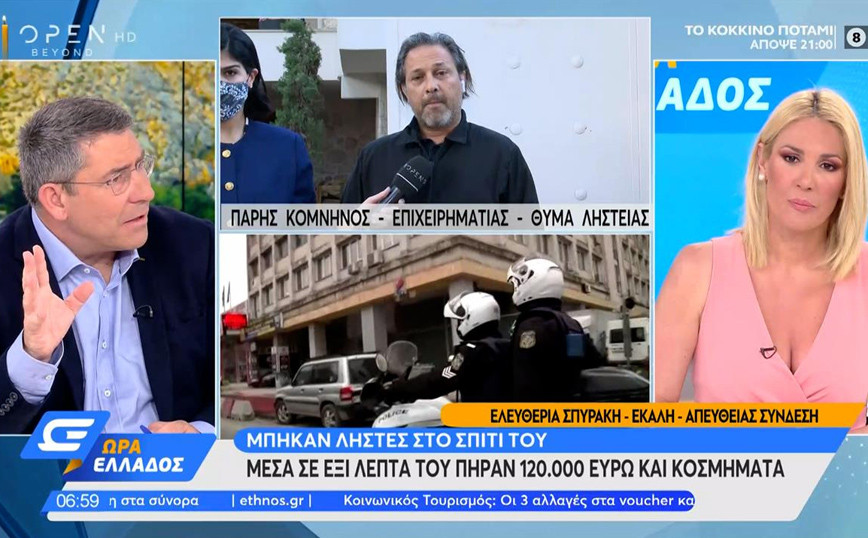 Μεγάλη ληστεία σημειώθηκε χθες στην Εκάλη, με τους ληστές να αποσπούν 120.000 ευρώ και κοσμήματα, ενώ το θύμα, ο Ελληνοαμερικανός επιχειρηματίας, Πάρης Κομνηνός, μίλησε για την ανάγκη της οπλοχρησίας.