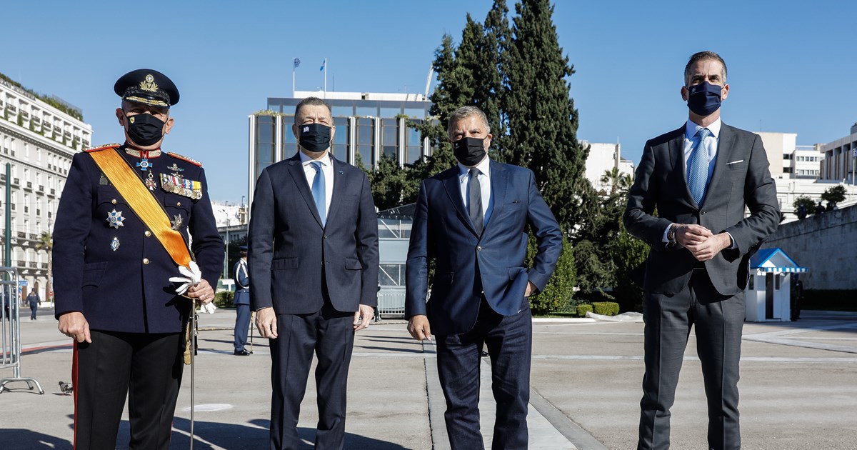 Η Θεοτόκος, τάνκς, πλοία και υποβρύχια στην πρόσοψη της Βουλής – Παράδοξος εορτασμός της «ημέρας των ΕΔ» (Photos/Video)