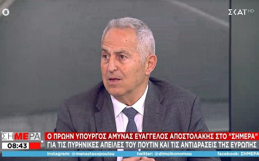 Ο επίτιμος αρχηγός ΓΕΕΘΑ και πρώην υπουργός Άμυνας, Ευάγγελος Αποστολάκης, κατά τη διάρκεια τηλεοπτικής του συνέντευξης, προχώρησε στην εκτίμηση ότι η Ρωσία δε θα υποχωρήσει στον πόλεμο της Ουκρανίας.