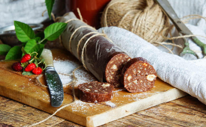 «Σαλάμι» σοκολάτας με φουντούκια και σύκα