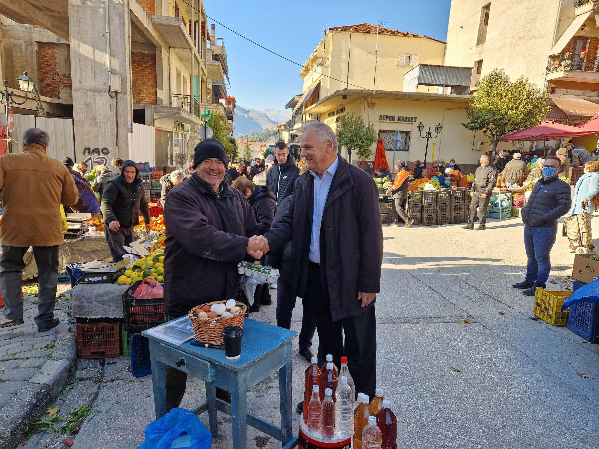 Τη λαϊκή αγορά της Καλαμπάκας,επισκέφτηκε ο πρ. Νομάρχης και Βουλευτής Ηλίας Βλαχογιάννης,στα πλαίσια των επαφών του με τους πολίτες. Στις συναντήσεις του με καταστηματάρχες, πωλητές, παραγωγούς και πολίτες, αντάλλαξε ευχές ενόψει των εορτών των Χριστουγέννων ,ενώ επισκέφτηκε εθιμοτυπικά και το Δημαρχείο.