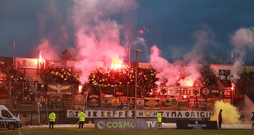 Στη διάρκεια της ενός λεπτού σιγής, οι φανατικοί των γηπεδούχων από το πέταλο άναψαν δεκάδες φωτοβολίδες, που λειτουργούσαν σαν κεριά και ενώ την ίδια στιγμή, φυσικά, δεν ακουγόταν το παραμικρό στο γήπεδο.