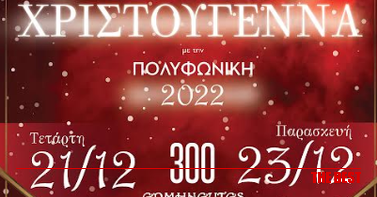 Royal PatrasΤετάρτη, 21 Δεκ 2022 20:30Με πυρετώδεις ρυθμούς συνεχίζονται οι προετοιμασίες της «ΠΟΛΥΦΩΝΙΚΗΣ» για τις δύο Χριστουγεννιάτικες συναυλίες του Οργανισμού, με τον γενικό τίτλο: «ΧΡΙΣΤΟΥΓΕΝΝΑ με την ΠΟΛΥΦΩΝΙΚΗ», που θα πραγματοποιηθούν την Τετάρτη 21 και την Παρασκευή 23 Δεκεμβρίου 2022, στο Θέατρο ROYAL, στις 8.30 το βράδυ (ακριβώς), με την συνδιοργάνωση της ΠΕΡΙΦΕΡΕΙΑΣ ΔΥΤΙΚΗΣ ΕΛΛΑΔΑΣ.
