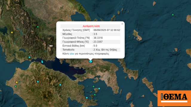 Σεισμός 3,6 Ρίχτερ στη Θήβα – Αισθητός και στην Αθήνα