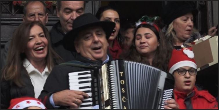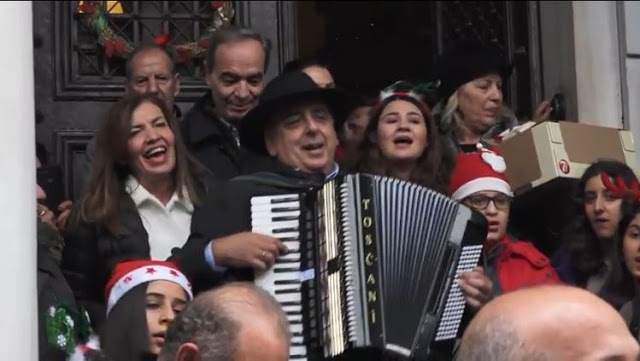 Μικροί και μεγάλοι ανέμεναν τον Παναγιώτατο, στον αυλόγυρο του Πατριαρχείου, μπροστά από το στολισμένο δένδρο, ψάλλοντας τα χριστουγεννιάτικα Κάλαντα.