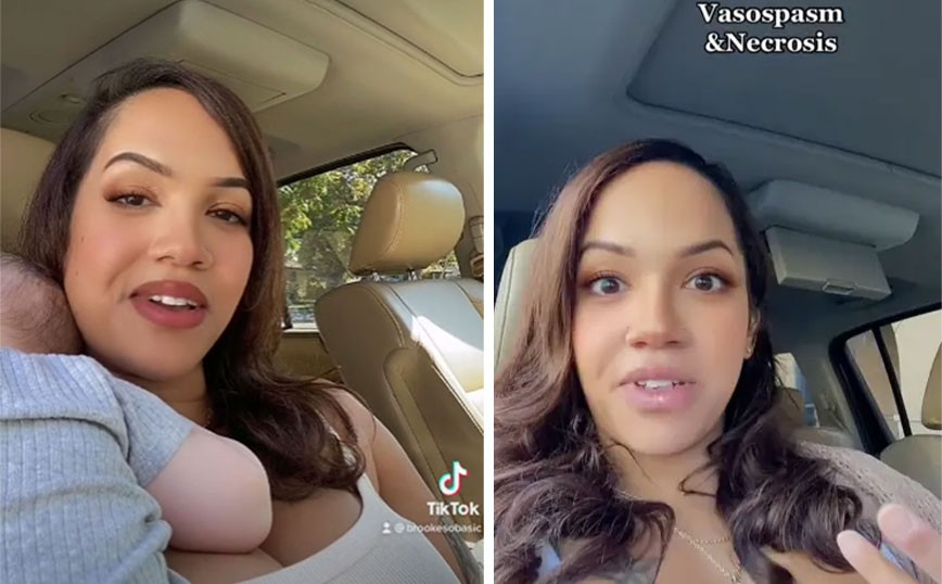 Μια νεαρή μητέρα αντιμετώπισε ένα ιδιαίτερα απρόοπτο περιστατικό, αφού την ώρα που θήλαζε το μωρό της, έχασε τη θηλή της, που έμεινε στο στόμα του παιδιού και εκείνη πανικόβλητη πήρε τηλέφωνο το νοσοκομείο αναζητώντας βοήθεια. Όπως αναφέρει η nypost.com, η 32χρονη Brooke από την Καλιφόρνια, που είναι μαμά έξι παιδιών, ανάρτησε ένα βίντεο στο TikTok που αποκάλυψε την ιστορία της, που έγινε όταν εκείνη ήταν 15 ετών και μόλις είχε αποκτήσει το πρώτο παιδί της. Η θηλή λίγο πριν κοπεί είχε γίνει «μαύρη στη βάση και λευκή στην άκρη», οπότε «κοιτάω κάτω και το βλέπω κάπως πνιγμένο», είπε χαρακτηριστικά και πρόσθεσε πως «η θηλή μου έσπασε και την είχε στο στόμα του». «Άρχισα να φρικάρω», είπε η γ