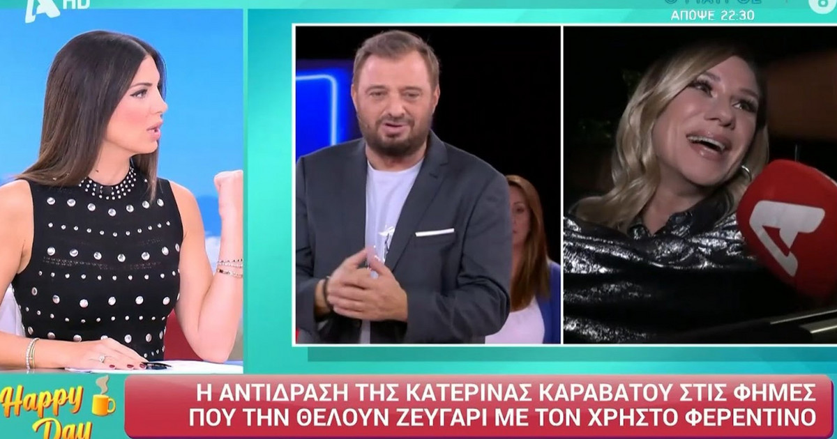 H Σταματίνα Τσιτμσιλή θέλησε να ξεκαθαρίσει το τοπίο γύρω από τις φήμες που θέλουν την Κατερίνα Καραβάτου να είναι σε σχέση με τον Χρήστο Φερεντίνο. «Να σας πω ότι αυτό με τον Φερεντίνο δεν ισχύει, σύμφωνα με το δικό μου ρεπορτάζ και το έχω διασταυρώσει από πολλές πλευρές. Ξέρω, έχω ρωτήσει κι έχω μάθει ότι δεν ισχύει. Το τι κάνει ο καθένας, το ξέρει καλύτερα από τους άλλους. Σύμφωνα με το δικό μου ρεπορτάζ, έχουν πολύ καλή χημεία στο ραδιόφωνο, είναι πολύ αγαπημένοι φίλοι και δεν ισχύει κάτι ερωτικό. Για να το πω ξεκάθαρα, δεν ισχύει ότι είναι ζευγάρι» σημείωσε η παρουσιάστρια του Alpha.