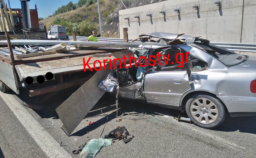 Τρομακτικές εικόνες από τροχαίο στο Κιάτο: ΙΧ «καρφώθηκε» σε φορτηγό