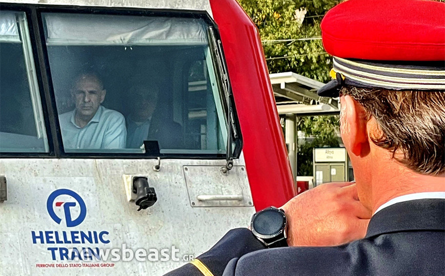 Στο πρώτο δρομολόγιο Αθήνα-Καλαμπάκα ο Γεραπετρίτης – Ανέβηκε στην καμπίνα του μηχανοδηγού