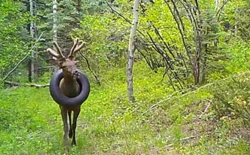 Ένας τάρανδος, που ζούσε εδώ και δύο χρόνια, δηλαδή τη μισή του ζωή, έχοντας περασμένο στον λαιμό ένα βαρύ λάστιχο αυτοκινήτου, απελευθερώθηκε από το φορτίο του χάρη στην παρέμβαση δασοφυλάκων στο Κολοράντο.