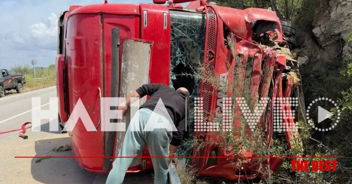 Ανατροπή νταλίκας στη Ζαχάρω: Τραυματίστηκε ο οδηγός του οχήματος