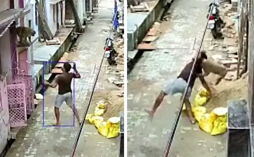 Ένα βίντεο από την Ινδία ήρθε στη δημοσιότητα και δείχνει έναν άνθρωπο που προσπαθεί να εκτοξεύσει μια πέτρα πάνω σε μία αγέλη μακάκων, μέχρι που ένα από τα ζώα του επιτίθεται και τον βγάζει νοκ αουτ με μια κίνηση. Σύμφωνα με την thesun.co.uk, το περιστατικό καταγράφηκε στη περιοχή Uttar Pradesh που βρίσκεται στα βόρεια της χώρας και δείχνει έναν άντρα, που μαζεύει πέτρες, τις οποίες στη συνέχεια εκτοξεύσει σε μια αγέλη μακάκων. Τα ζώα αποφεύγουν τις ρίψεις και τρέπονται σε φυγή, όμως ένα από αυτά μένει πίσω, καθώς έχει βάλει στο «μάτι» τον διώκτη τους. Έτσι, στο βίντεο που διέρρευσε στο διαδίκτυο, φαίνεται ο μακάκος να πηδά σε μια προεξοχή και στη συνέχεια να εκτοξεύεται στον άνδρα, ρίχν