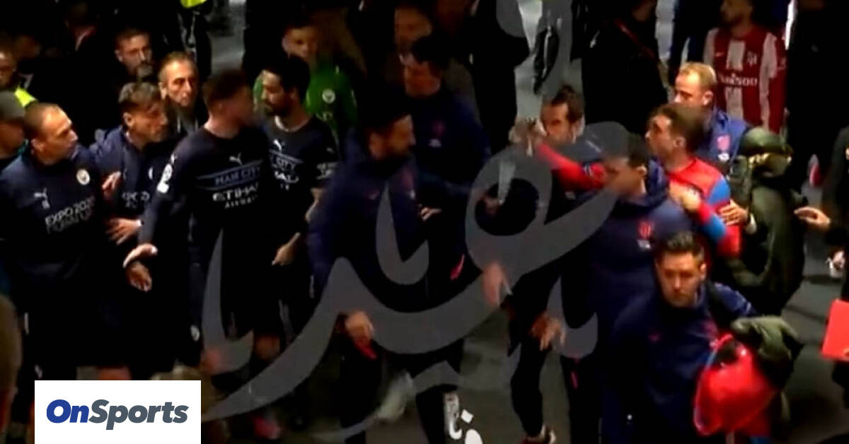 BINTEO: Χαμός στη φυσούνα στη Μαδρίτη, επενέβη η αστυνομία! 14/04/2022 Τεταμένο ήταν το κλίμα με τη λήξη της αναμέτρησης του «Γουάντα Μετροπολιτάνο» ανάμεσα στους παίκτες της Ατλέτικο Μαδρίτης και της Μάντσεστερ Σίτι.  Όπως αναφέρουν βρετανικά ΜΜΕ, χρειάστηκε η επέμβαση της αστυνομίας για να μην ξεφύγει εντελώς η κατάσταση στη φυσούνα ανάμεσα στους ποδοσφαιριστές των δύο ομάδων. Μάλιστα, στα ρεπορτάζ αναφέρεται πως έπεσαν αρκετές «ψιλές» ανάμεσα σε παίκτες και άλλα άτομα των δύο αποστολών!  Ταυτόχρονα όπως σημειώνει το «BT Sports» ο Σάβιτς με τον Γκρίλις έδωσαν συνέχεια στα όσα συνέβησαν στον αγωνιστικό χώρο, όπου ο Μαυροβούνιος έπιασε από τα μαλλιά τον