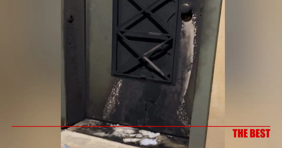 Από την έκρηξη σημειώθηκε μικρής έκτασης φωτιά στην πόρτα της εισόδου