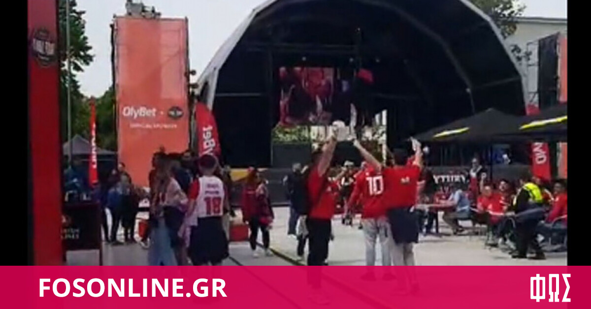 Όπως σε κάθε αγώνα, έτσι και τώρα, οι παίκτες των Πειραιωτών, πραγματοποίησαν το καθιερωμένο τους τελετουργικό στη φυσούνα του γηπέδου, με τους Βεζένκοφ και Λαρεντζάκη να δίνουν το σύνθημα νίκης!