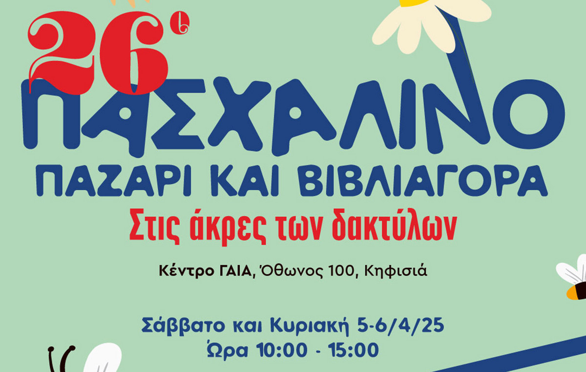 Το Σάββατο και την Κυριακή 5 & 6 Απριλίου στο Κέντρο ΓΑΙΑ στην Κηφησιά θα πραγματοποιηθεί το 26ο Πασχαλινό Παζάρι των φίλων του μουσείου “Γουλανδρή Φυσικής Ιστορίας” Θα λάβουν μέρος αξιόλογοι χειροτέχνες ενώ παράλληλα θα υπάρχουν άπειρα βιβλία, «το Μικρό Μοναστηράκι» με γυαλικά, ασημικά, κοσμήματα, μικροέπιπλα κ.ά., μικρά φυτά,εδέσματα για να καταναλωθούν επιτόπου ή για το σπίτι κ.ά. Επίσης τις ημέρες διεξαγωγής του Παζαριού θα γίνεται εγγραφή νέων μελών με 20% έκπτωση. Είσοδος ΕΛΕΥΘΕΡΗ Το parking θα είναι διαθέσιμο Ώρες : 10:00-15:00 Οργανωτής και οικοδεσπότης : ΦΙΛΟΙ ΕΘΝΙΚΟΥ ΜΟΥΣΕΙΟΥ ΦΥΣΙΚΗΣ ΙΣΤΟΡΙΑΣ ΓΟΥΛΑΝΔΡΗ ​​filoi-gnhm.gr/site/