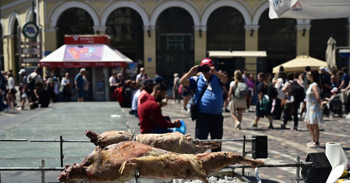 Αθήνα: Πήραν φωτιά οι σούβλες και στο Μοναστηράκι – Εντυπωσιασμένοι τουρίστες τραβούν τα αρνιά φωτογραφίες