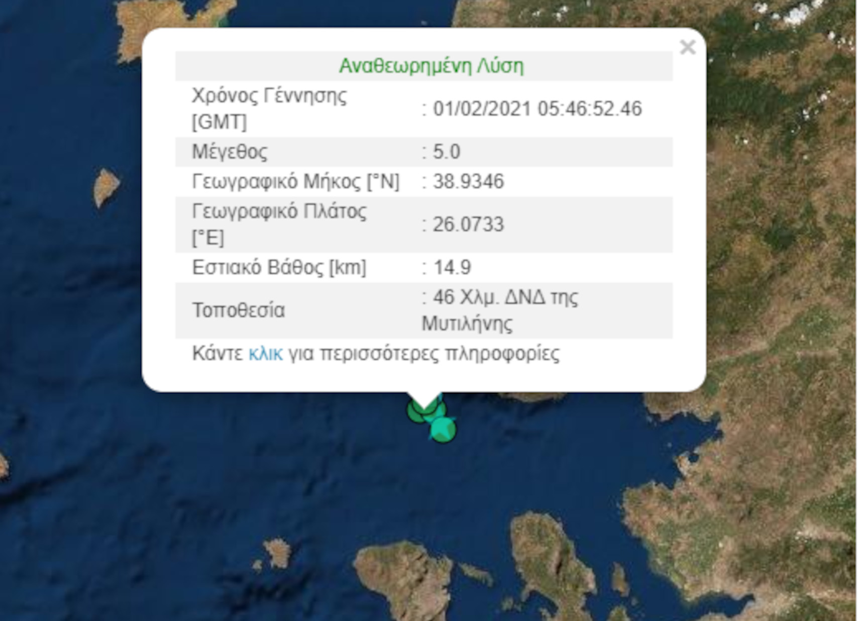 Μυτιλήνη: Δύο νέοι μετασεισμοί 4,8 και 4,5 Ρίχτερ