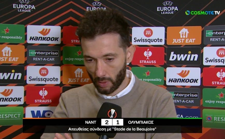 Ο Ολυμπιακός είχε στα χέρια του έναν πολύτιμο βαθμό κόντρα στη Ναντ στη Γαλλία, στην πρεμιέρα των ομίλων του Europa League, αλλά στο 93ο λεπτό δέχθηκε το γκολ του Γκουεσάν και ηττήθηκε με 2-1, με τον προπονητή του, Κάρλος Κορμπεράν, να έχει παράπονα από τον διαιτητή, τονίζοντας ότι είχε προηγηθεί φάουλ στον Αμπουμπακάρ Καμαρά στο ξεκίνημα της φάσης. Αναλυτικά όσα είπε ο Ισπανός προπονητής μετά τη λήξη του αγώνα… Για το τι δεν πήγε καλά και ήρθε η ήττα: «Δυσκολευτήκαμε να μπούμε καλά στο παιχνίδι στο α’ μέρος. Στο β’ μέρος κάναμε κάποια πράγματα για την ισοπαλία, όχι όμως για τη νίκη. Στο 2ο μέρος αξίζαμε την ισοπαλία. Το πιο δίκαιο αποτέλεσμα θα ήταν αυτό. Τα τελευταία λεπτά ό
