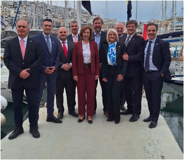 Η υπουργός, μαζί με τον πρόεδρο της Ναυτιλιακής Λέσχης Πειραιώς, Γεώργιο Αλεξανδράτο, την πρόεδρο της Ένωσης Ελλήνων Εφοπλιστών, Μελίνα Τραυλού, τον πρόεδρο του Ναυτικού Επιμελητηρίου Ελλάδος, Γεώργιο Πατέρα, τον πρόεδρο της Ένωσης Εφοπλιστών Ναυτιλίας Μικρών Αποστάσεων, Χαράλαμπο Σημαντώνη, τον πρόεδρο του Συνδέσμου Επιχειρήσεων Επιβατηγού Ναυτιλίας,
