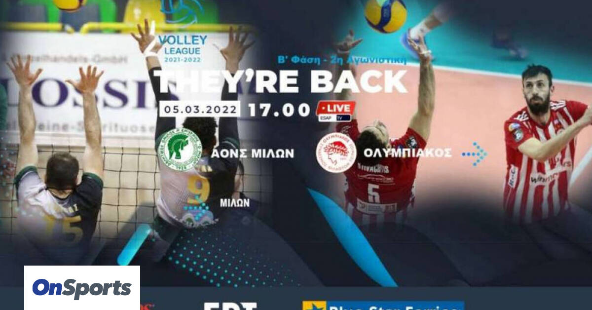 Volley League: Για την υπέρβαση ο Μίλωνας κόντρα στον Ολυμπιακό στους άνδρες, ντέρμπι πρωτιάς μεταξύ «αιωνίων» στις γυναίκες (ΦΩΤΟ) 05/03/2022 Με την αναμέτρηση μεταξύ του Μίλωνα και του Ολυμπιακού στη Νέα Σμύρνη θα συνεχιστεί το Σάββατο η δεύτερη «στροφή» στη β’ φάση του πρωταθλήματος της Volley League Ανδρών. Ο Μίλωνας με 1 βαθμό έναντι 11 του Ολυμπιακού είναι το αουτσάιντερ και παλεύει πάντα για τη μεγάλη έκπληξη, όχι γιατί μπορεί να προλάβει την πρώτη 4άδα, αλλά για να μπορέσει να αποκτήσει προβάδισμα για την 5η θέση που είναι και η υπέρβαση για την εφετινή σεζόν. Ο Ολυμπιακός έχει 11 βαθμούς έναντι 16 του Παναθηναϊκού και 15 του ΠΑΟΚ και δε σκέφτεται