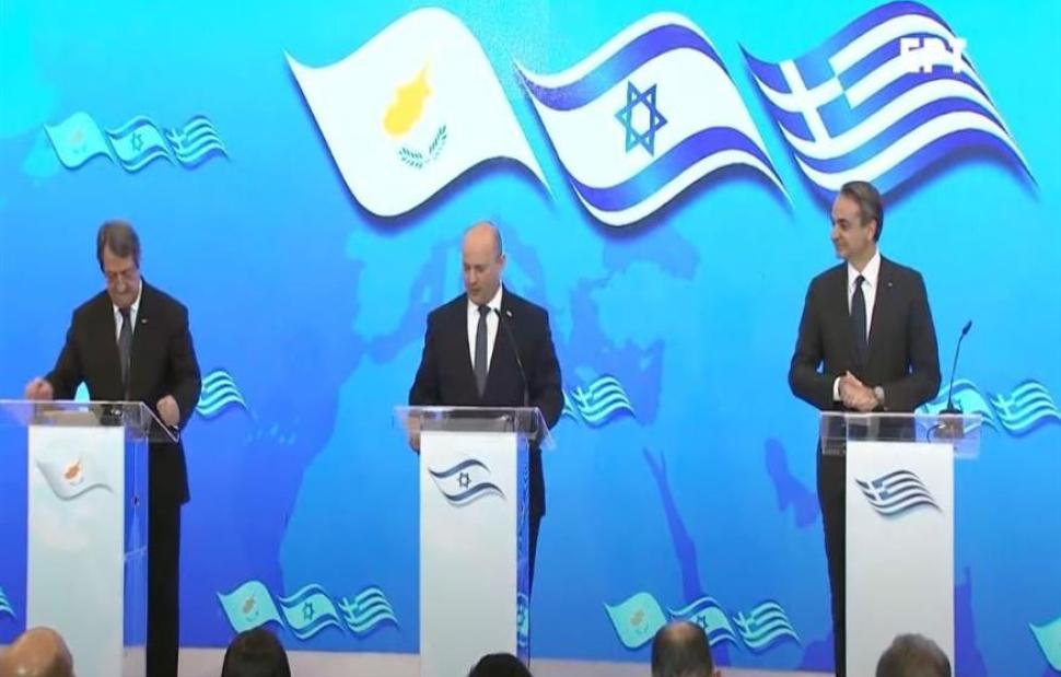 Στις 12:30 ο Έλληνας πρωθυπουργός, ο πρωθυπουργός του Ισραήλ, καθώς και ο πρόεδρος της Κυπριακής Δημοκρατίας, Νίκος Αναστασιάδης, θα κάνουν δηλώσεις προς τον Τύπο. Θα ακολουθήσει η τριμερής συνάντηση κορυφής.