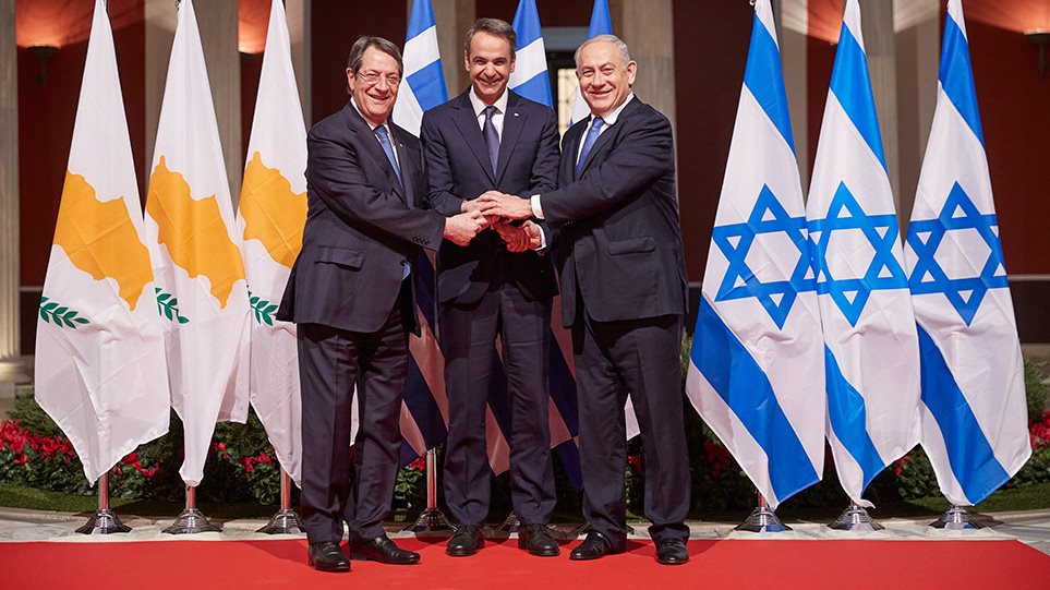 Μια ίσως αναμενόμενη αλλά ενδιαφέρουσα σύμπτωση σημειώθηκε κατά την τελετή υπογραφής της συμφωνίας του αγωγού EastMed μεταξύ Ελλάδος, Κύπρου και Ισραήλ, που δεν άφησε ασχολίαστη ο πρωθυπουργός, Κυριάκος Μητσοτάκης.
