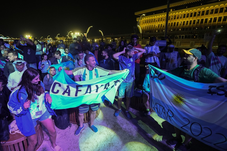 Όπως συμβαίνει κάθε βράδυ πριν από αγώνα της Αργεντινής στο Μουντιάλ 2022, χιλιάδες οπαδοί της συγκεντρώνονται στην ιστορική αγορά της Ντόχα, Σουκ Γουακίφ, για να φωνάξουν υπέρ της «αλμπισελέστε» κι αυτό το βράδυ δεν ήταν διαφορετικό καθώς απόψε (13/12, 21:00) η ομάδα τους παίζει με την Κροατία στον πρώτο ημιτελικό της διοργάνωσης. Το… μενού είχε γνωστές σημαίες με τον Λιονέλ Μέσι, τον Ντιέγκο Μαραντόνα και άλλους θρύλους της εθνικής Αργεντινής, είχε πολλές φανέλες με το «10» στην πλάτη, αλλά και κοροϊδία προς τους αντιπάλους, πιο συγκεκριμένα δύο. Τη Βραζιλία και την Αγγλία. Αφού ακούστηκαν γνωστά συνθήματα που τραγουδούν από την έναρξη του Μουντιάλ 2022, οι οπαδοί της Αργεντινής ά