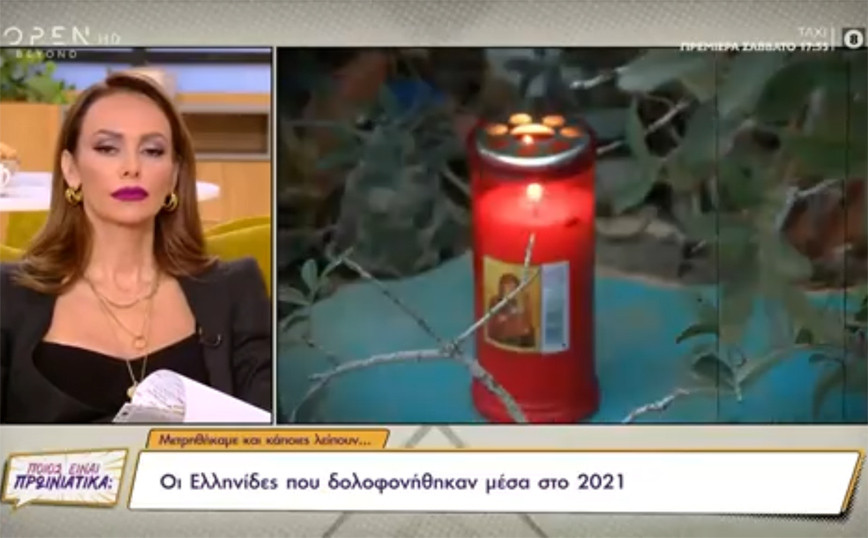 Η Γαρυφάλλια, η Καρολάιν, η Κωνσταντίνα, η Βασιλική, η Σταυρούλα, η Νεκταρία είναι, άθελά τους, πρωταγωνίστριες με τραγικό τέλος. Πέθαναν από το χέρι του συντρόφου τους σε εγκλήματα που συγκλόνισαν τη χώρα το 2021. Η 54χρονη Βασιλική δολοφονήθηκε στα Χανιά με 14 μαχαιριές από τον Νορβηγό σύντροφό της. Η Κωνσταντίνα από τη Μακρυνίτσα, 28 ετών, έφυγε από το σπίτι στο οποίο διέμενε με τον σύζυγό της για να γλιτώσει από την κακοποίηση που υφίστατο. Ο εν διαστάσει σύζυγός της εισέβαλε στο πατρικό της σπίτι και σκότωσε την Κωνσταντίνα και τον αδερφό της. Η Καρολάιν ήταν το επόμενο θύμα γυναικοκτονίας που συγκλόνισε την ελληνική κοινωνία, καθώς ο σύζυγός της έπαιζε θέατρο για περισσότερο από ένα